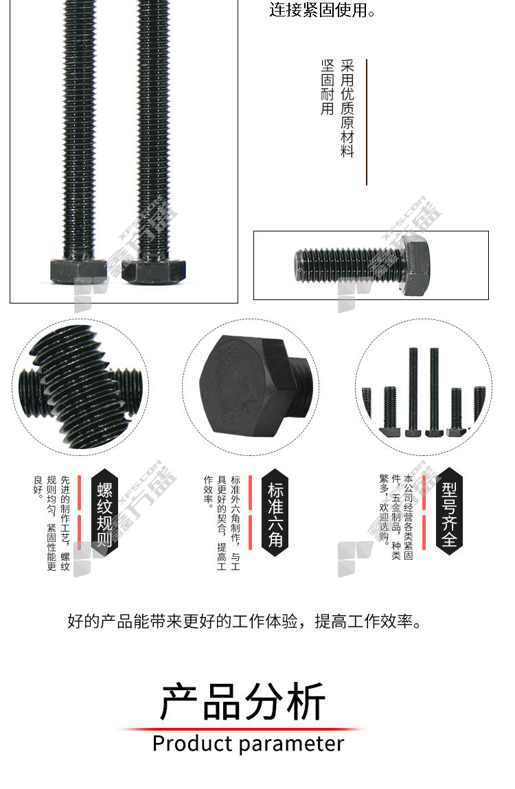 商品名称: 冰禹 8.8级高强度黑色外六角螺栓 M18 50mm
