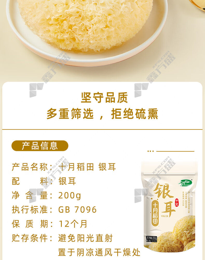 商品名称: 十月稻田 干银耳 200g