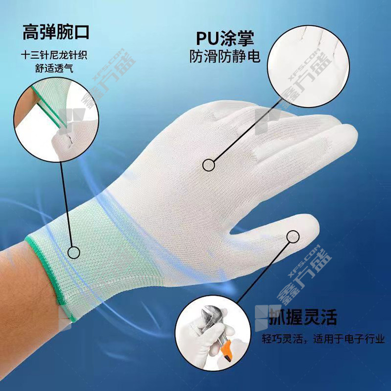 商品名称: 宇博之星 22克白色PU涂掌手套 L码 灰边