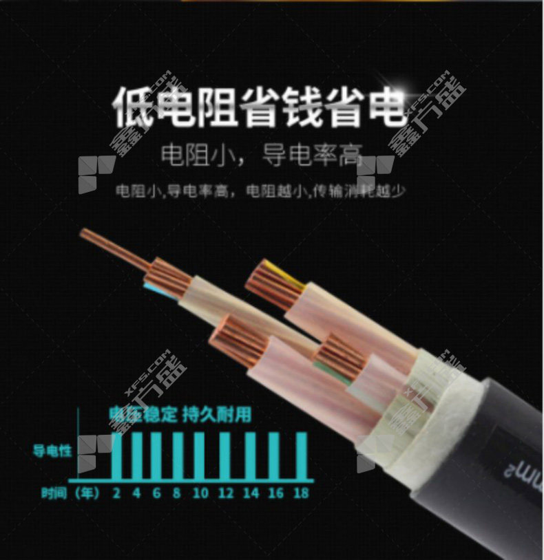 低压铠装电力电缆(YJV22)导体材质:无氧铜