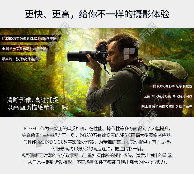 首页 首页 > 佳能单反相机 4K视频 Vlog拍摄 单反机身 EOS 90D