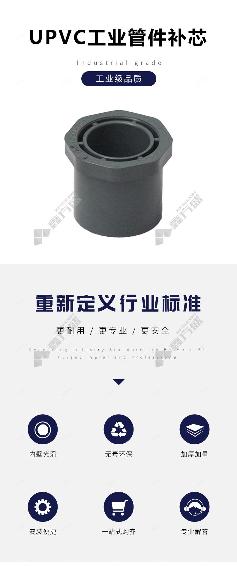 商品名称: 环琪 UPVC工业管件补芯 DN80*50/SCH80 灰色