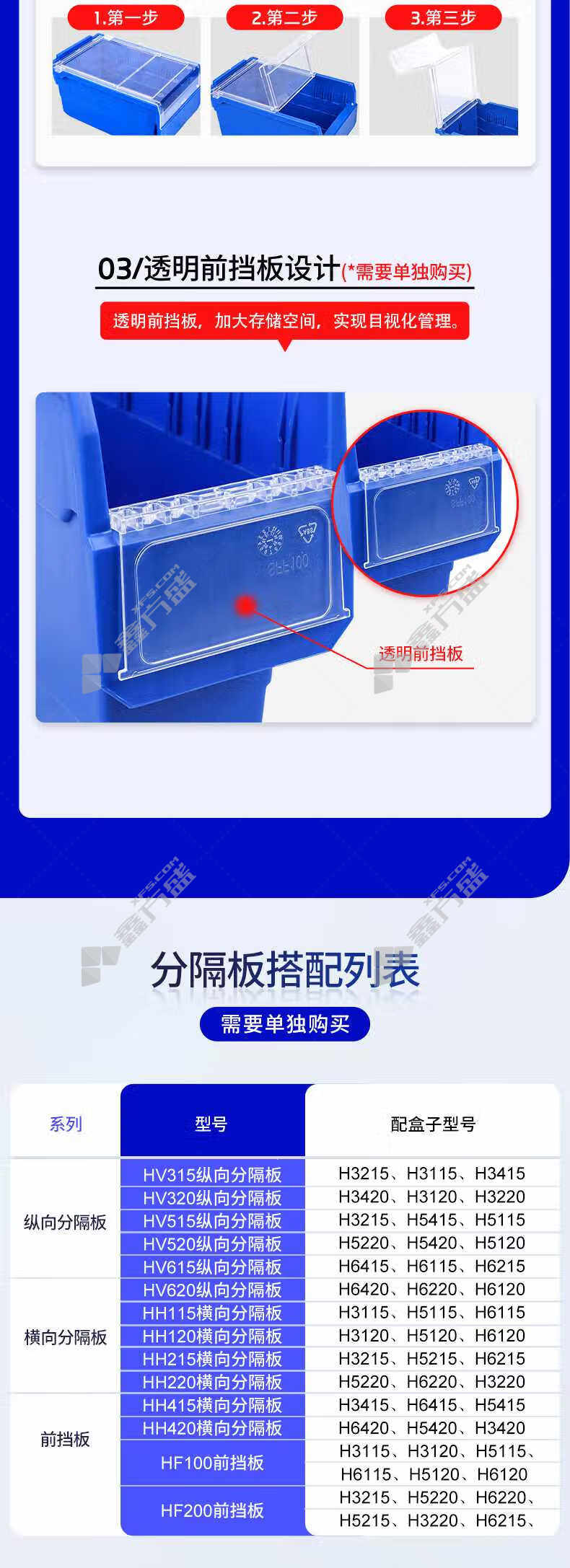 商品名称: 盈立方 分隔式零件盒 H4109 400*117*90mm 蓝色 9kg 2.7L