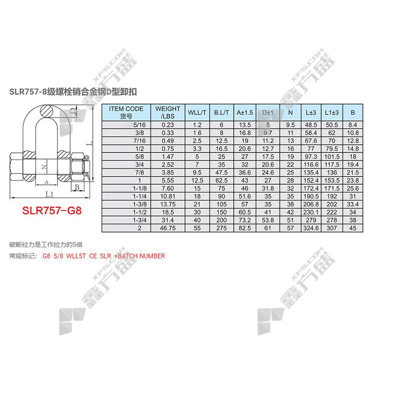 商品名称: SLR 757 直型卸扣 5/16" 1.2T 48.5mm