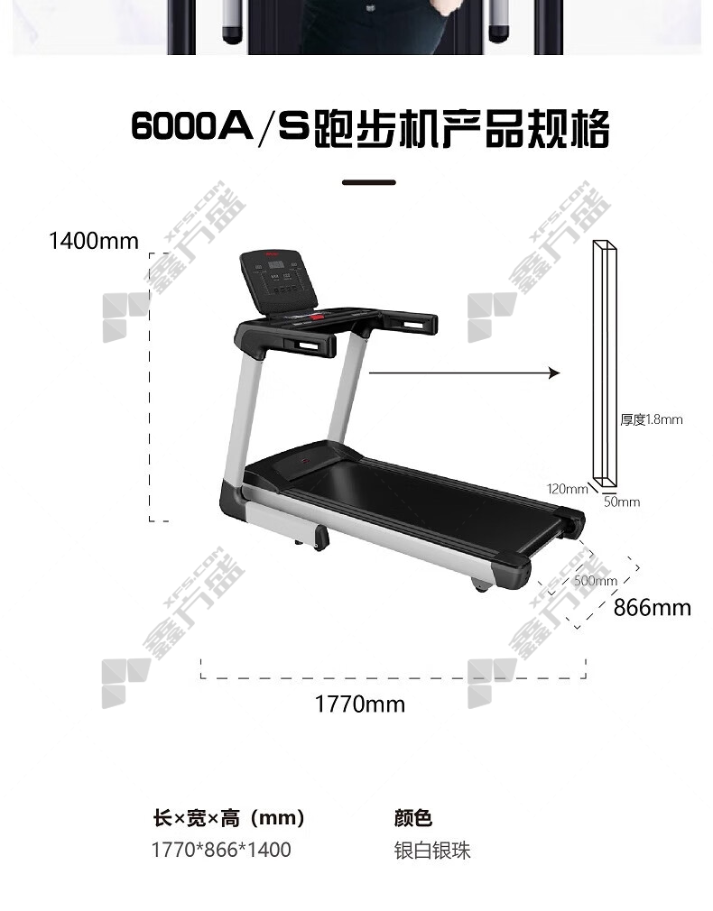 商品名称: 万年青 F1-6000S 豪华电动跑步机 1800*870*1405mm 2KW F1-6000S