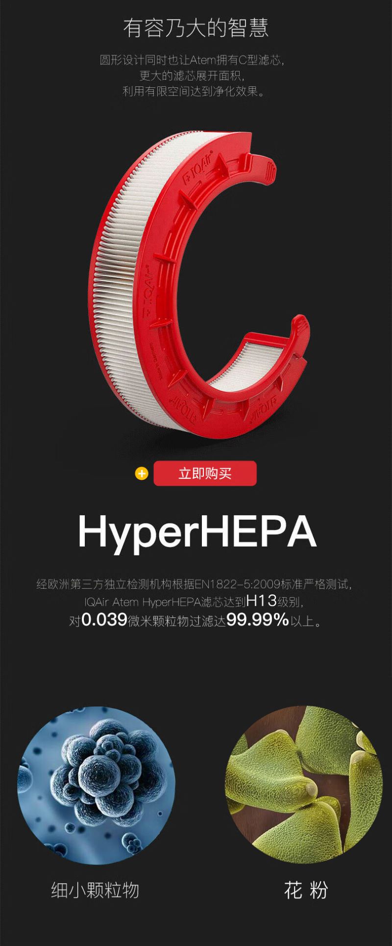 商品名称: IQAir Atem Desk 桌面空气净化器 0.5-3.4W 100-240V ATEM CN 黑色