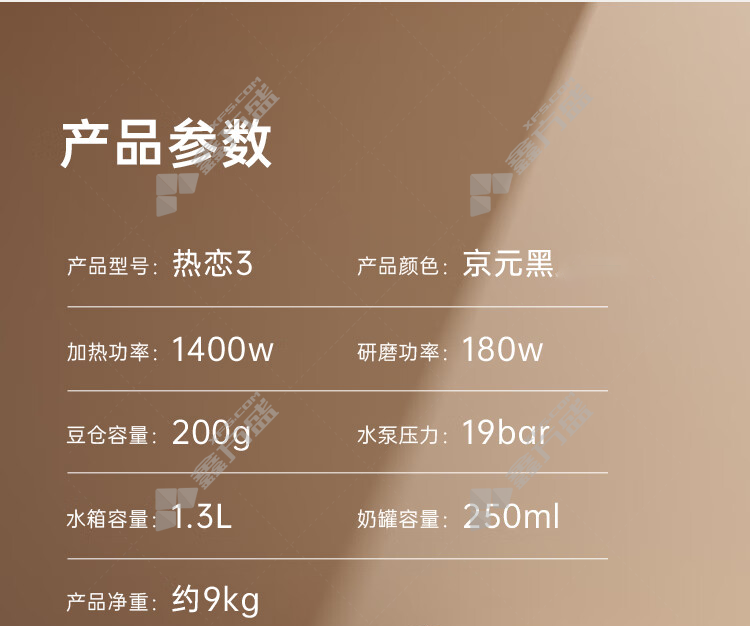 商品规格:1400W/ 220V /1.3L/京元黑/19bar