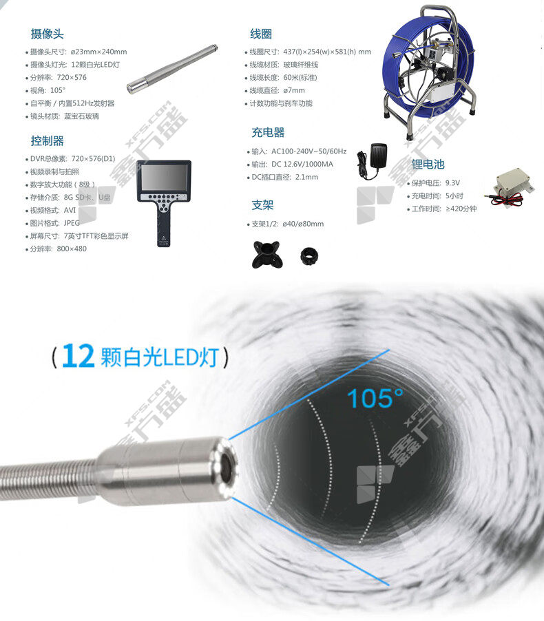 商品名称: 管道摄像机内窥镜 BRK-B3-C23AB 60m
