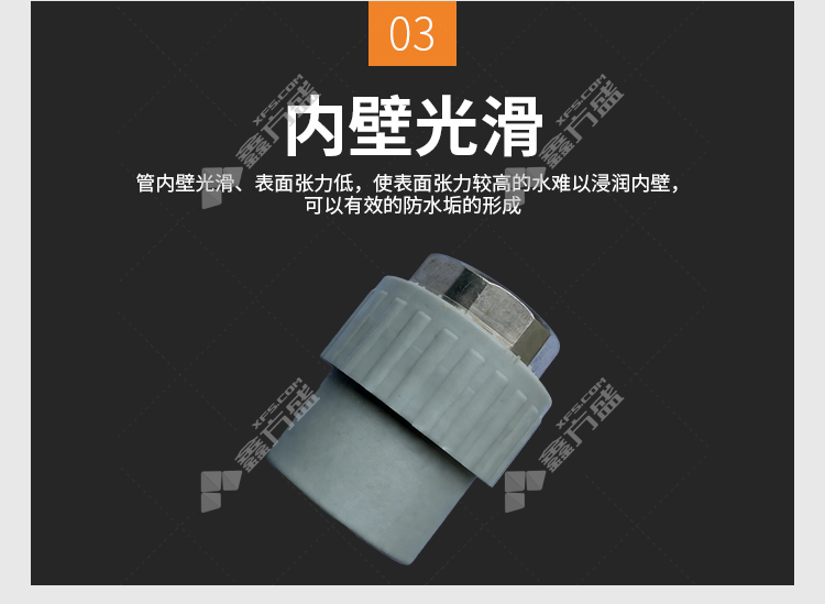商品名称: 固硕 浅灰色 Ⅱ型 PE-RT内牙直通 110*4"