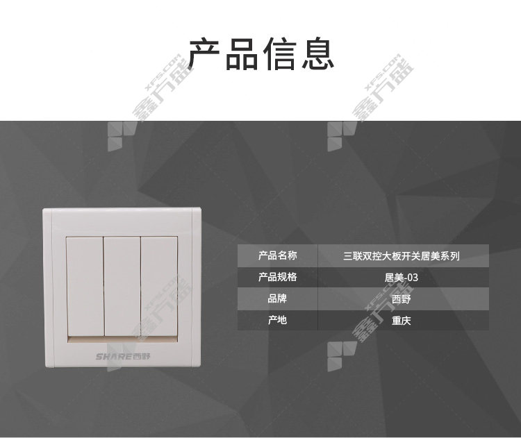 商品名称: 西野 三联双控大板开关居美系列 居美-03 白色